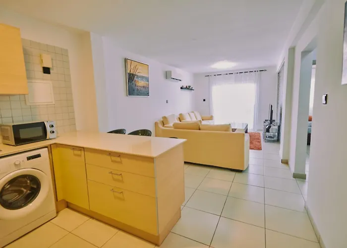 A Fig Tree Bay mindössze 400 méter távolságra helyezkedik el, a Szerelem híd pedig 2 km-re van a 107 m²-es apartmantól. Ajía Nápa szívéhez 15 percet kell gyalogolni. A Parko Paliatso Vidámpark alig 13 percnyi sétára található.